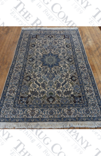 Vintage Silk Accent Persian Ivory Blue (4'2"x6'7")