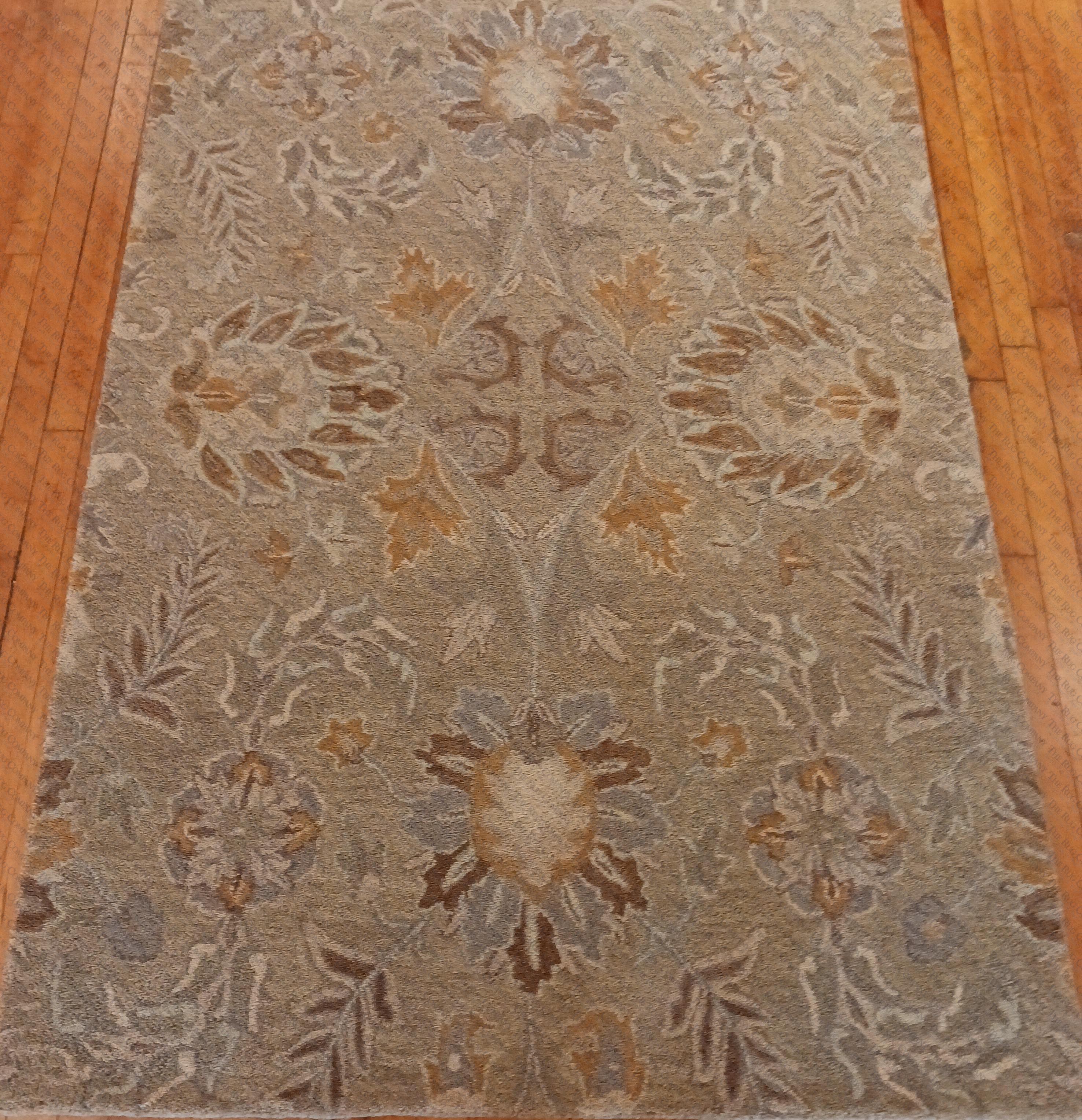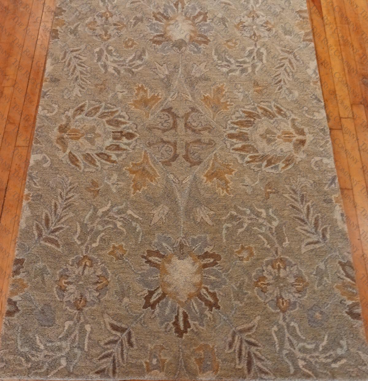 100% Wool Tufted India, Limited Stock 2x3,5x7'9,8x10,9x12,10x14,12x15, runners 2'6x8, 2'6x12. Back ground color is a taupe/tan with a hint of sage green which does not show up in all lighting.