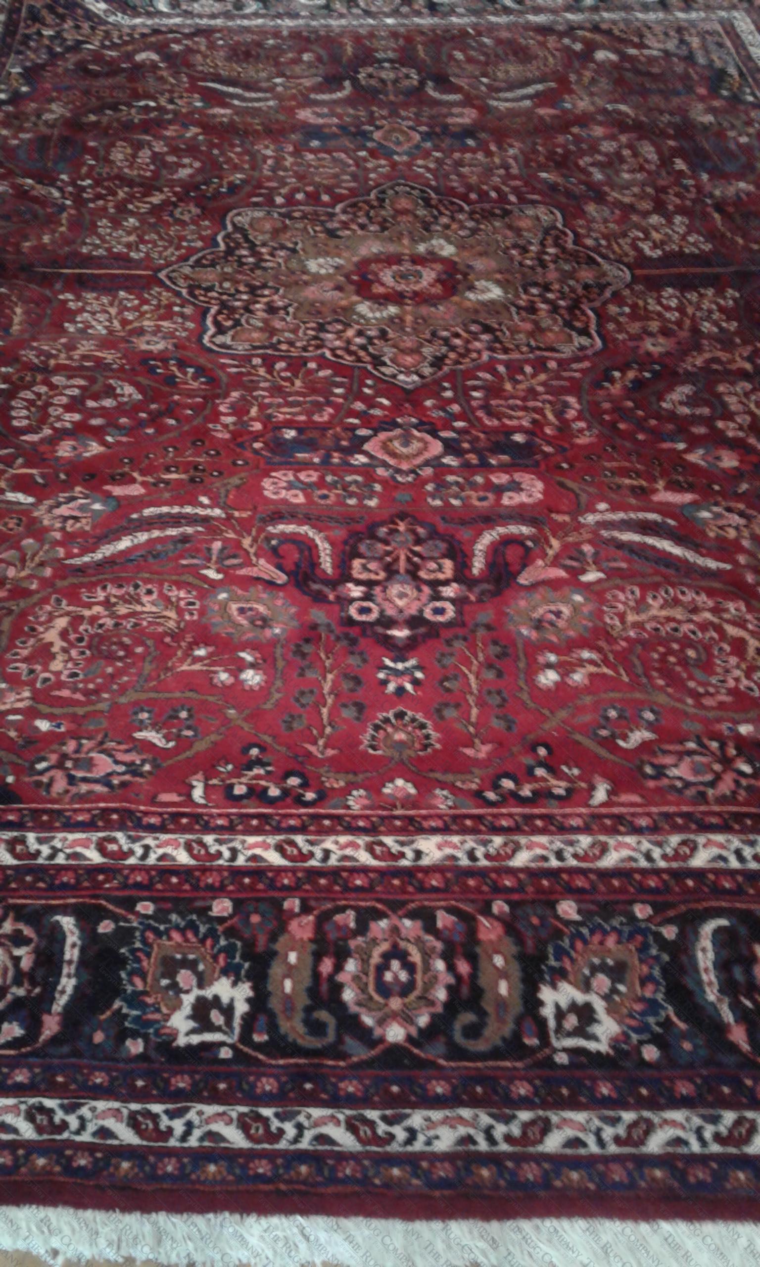 100% Wool,Hand Knotted, Iran One Only Theme: OrientalShape: RectangularColors: BlueCharcoalCocoaCranberryCreamDark IvoryGoldMulti-coloredNavyRedRoseWeave: Hand KnottedFiber: WoolSale price: $4,200.00