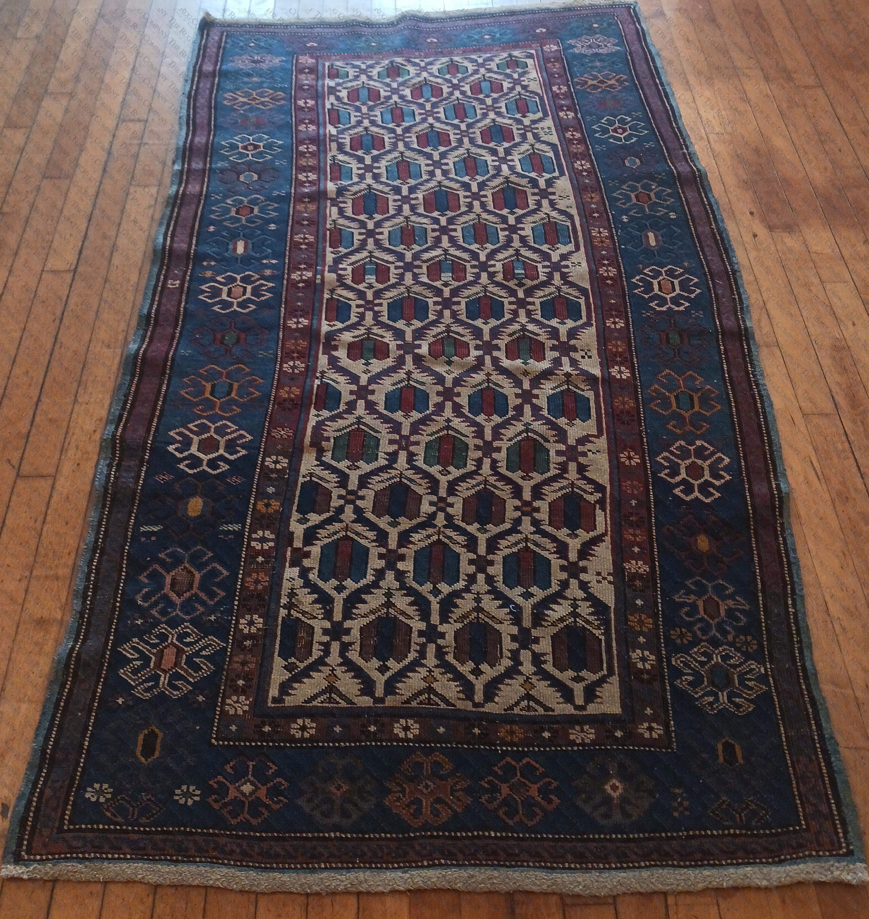 100% Wool Antique, not straight. Theme: OrientalShape: RectangularColors: BlueBrickCreamDark IvoryEarth ToneIvory & BeigeMulti-coloredWeave: Hand KnottedFiber: WoolSale price: $550.00